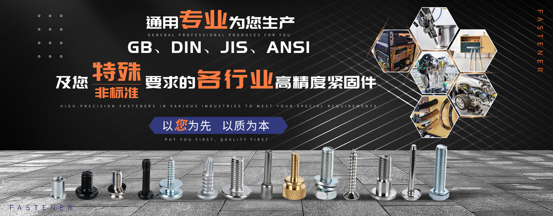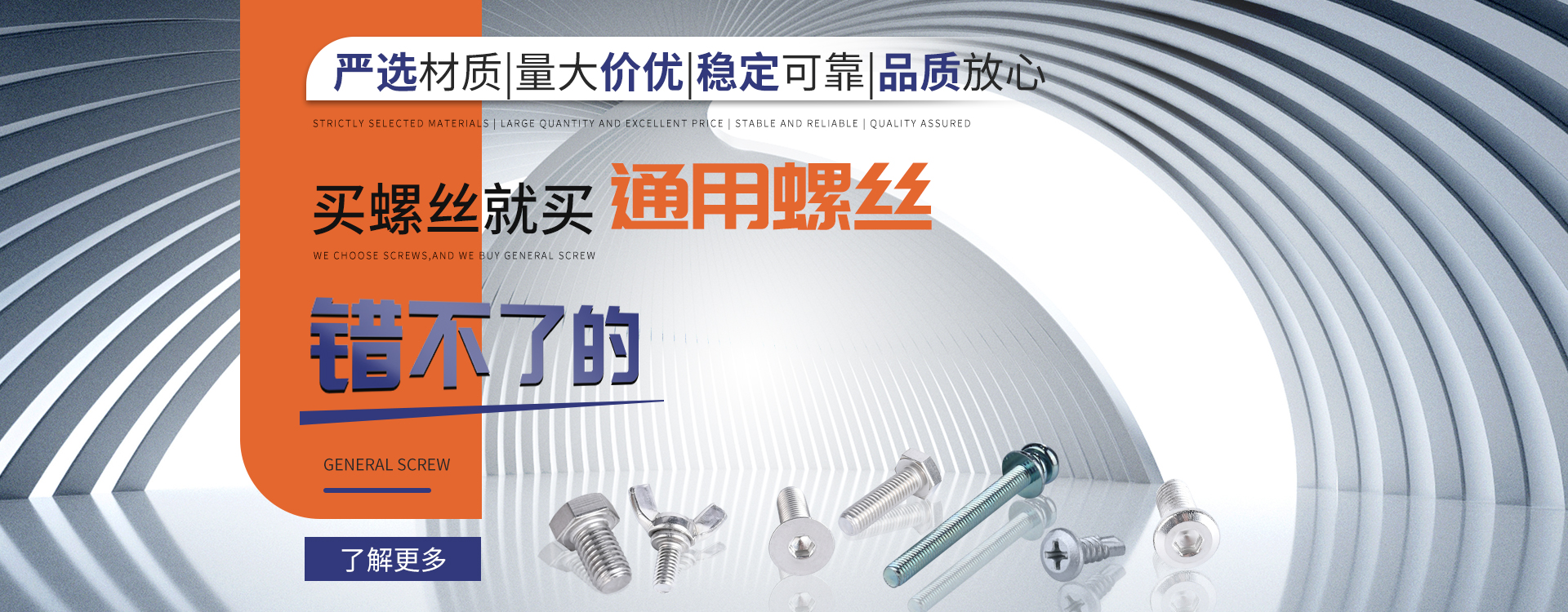 中山市通用螺絲制造有限公司成立于1987年,工廠坐落于廣東四小虎之一的中山市,北連廣州,毗鄰港澳??傉嫉孛娣e14000m 2,足有兩個足球場1998年通過德國萊茵TUV ISO9002認證,于2002年通過TUV ISO9001:2000認證。2008年通過ISO 14000認證。我司主營自攻螺絲、組合螺絲機械螺絲防松螺絲等標準和非標準件既可按客戶的要求提交所需的產品,也可為客戶量身定做所需產品。我司擁有專業的產品檢測隊伍和投影分析儀、金相、硬度計(韋氏和洛氏)、扭矩力測試計等完善的檢測設備,為電子、電器、五金塑料、衛浴、家具、機械、汽配等行業提供符合歐盟質量、環保要求的產品2006年,我司自主開發的ERP管理系統,使我們的生產和服務效率得到了極大的提高。 經過三十多年地摸爬滾打,依靠眾多新老顧客的支持,通用螺絲逐漸成長為國內知名的緊固件供應商。了解更多 >>